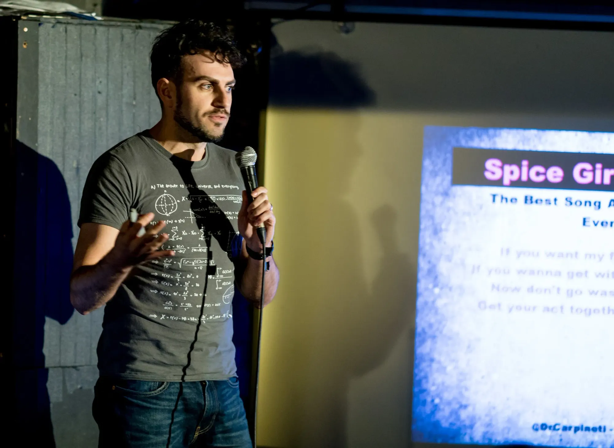 I've given talks at many different types of events and in different styles. I've been invited to speak at the Royal Observatory of Greenwich and the Cheltenham Science Festival. I've given talks at the Science Museum, at the World Sci-Fi convention, in Parliament, at a literary salon in Shoreditch, and with Science Show Off a few times. [Photo credit: Steve Cross]